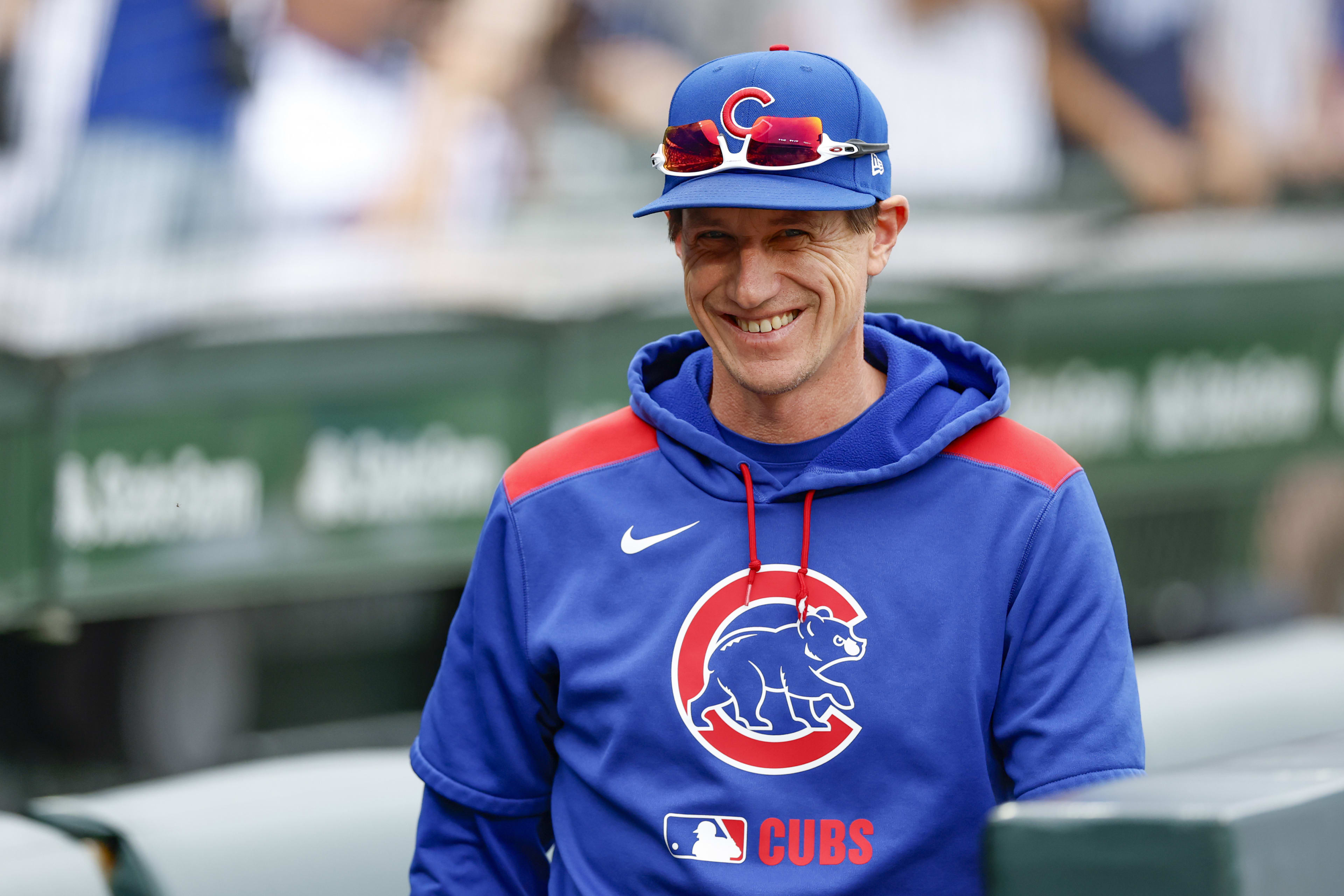 Apr 18, 2025; Chicago, Illinois, USA; Chicago Cubs manager Craig Counsell (11) smiles before a game between the Cubs and Arizona Diamondbacks at Wrigley Field.