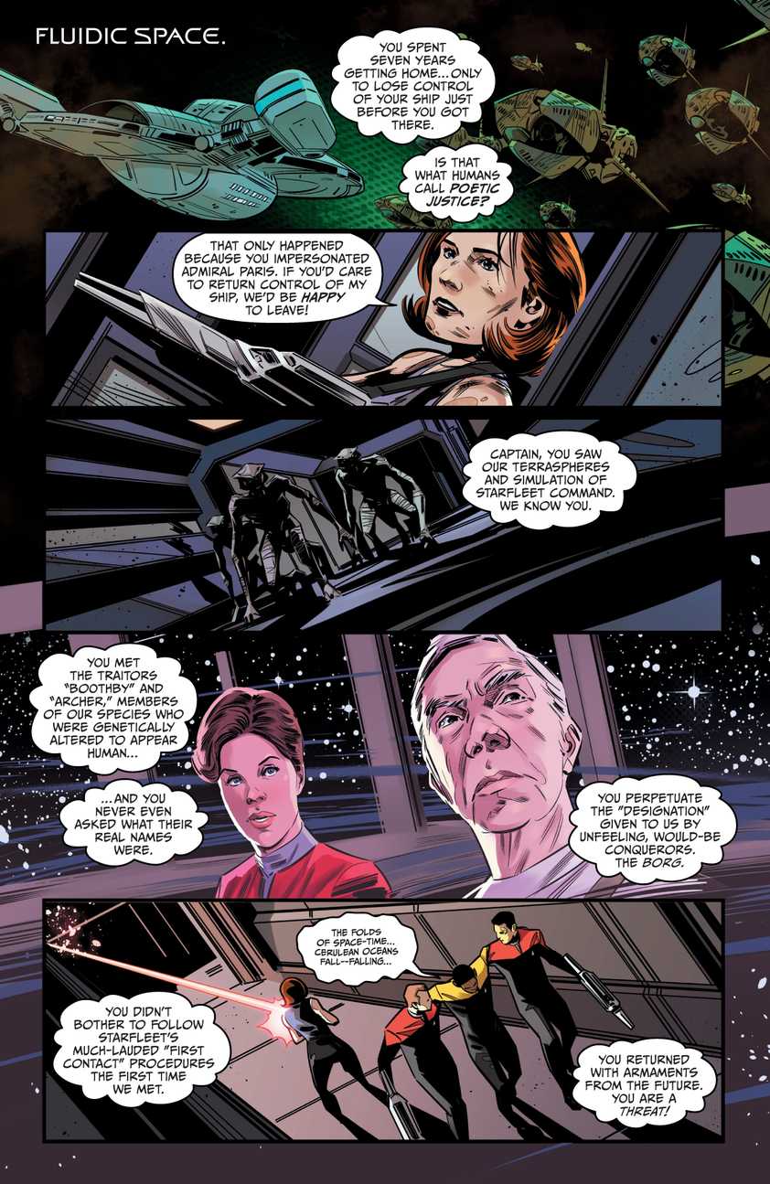 That's the big dramatic moment in the issue when Janeway has the chance to prevent Species 8472 from getting to Earth from the fluidic space, but the same effect will make sure that VOYAGER doesn't make it, and she is willing to make that choice.