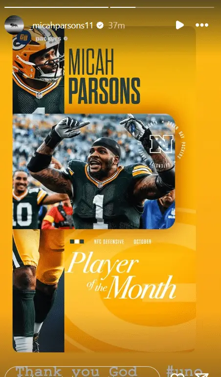 “You know that’s right. Micah Parsons is the NFC Defensive Player of the Month!” the team shared on Instagram.