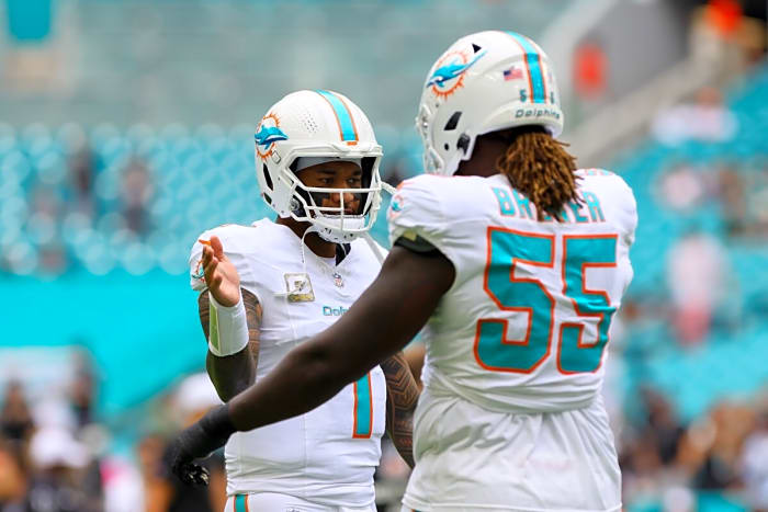 Brooks has endured a tough start to the season as he's playing behind a shaky interior defensive line through the first month of the season. It's been tough sledding to anticipate gaps with confidence as defensive tackles are getting washed out of gaps and being overwhelmed at the point of attack. Brooks is a well-respected leader who is in the prime of his career and under contract through the end of the 2026 season — which would set the stage for him to get a year of overlap with the start of Miami's next build before the team must make any decisions on his contract status.