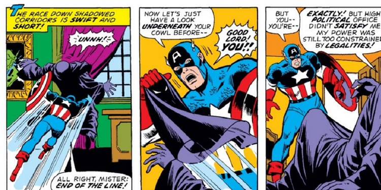 Perhaps the best example of this type of Captain America story came in 1974. The “Secret Empire” arc, not to be confused with the 2017 crossover of the same name, pits Captain America against a wide-reaching conspiracy that was firmly entrenched in American life. Written as a response to the Watergate Scandal, the story is regarded as a classic.