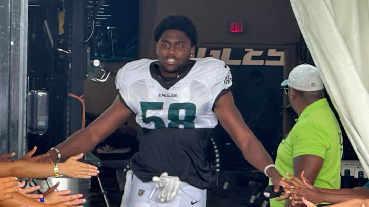 Jalyx Hunt had just picked off Chicago quarterback Caleb Williams. It was the outside linebacker/edge rusher’s second interception of the season, and he returned this one 11 yards to the Bears’ 36. It gave the Eagles the ball back with 6:36 to go in the third quarter.